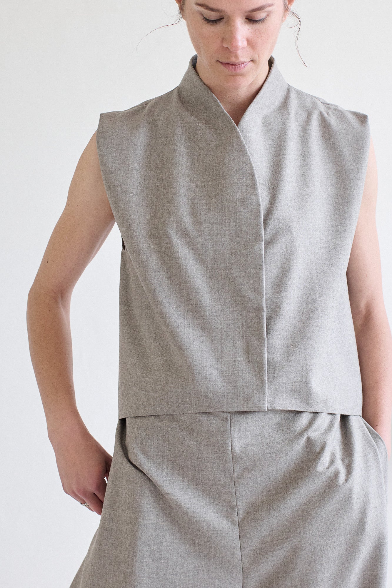 Top z kašmíru a vlny s jemně oblým tvarováním. Skryté zapínání na cvočky.